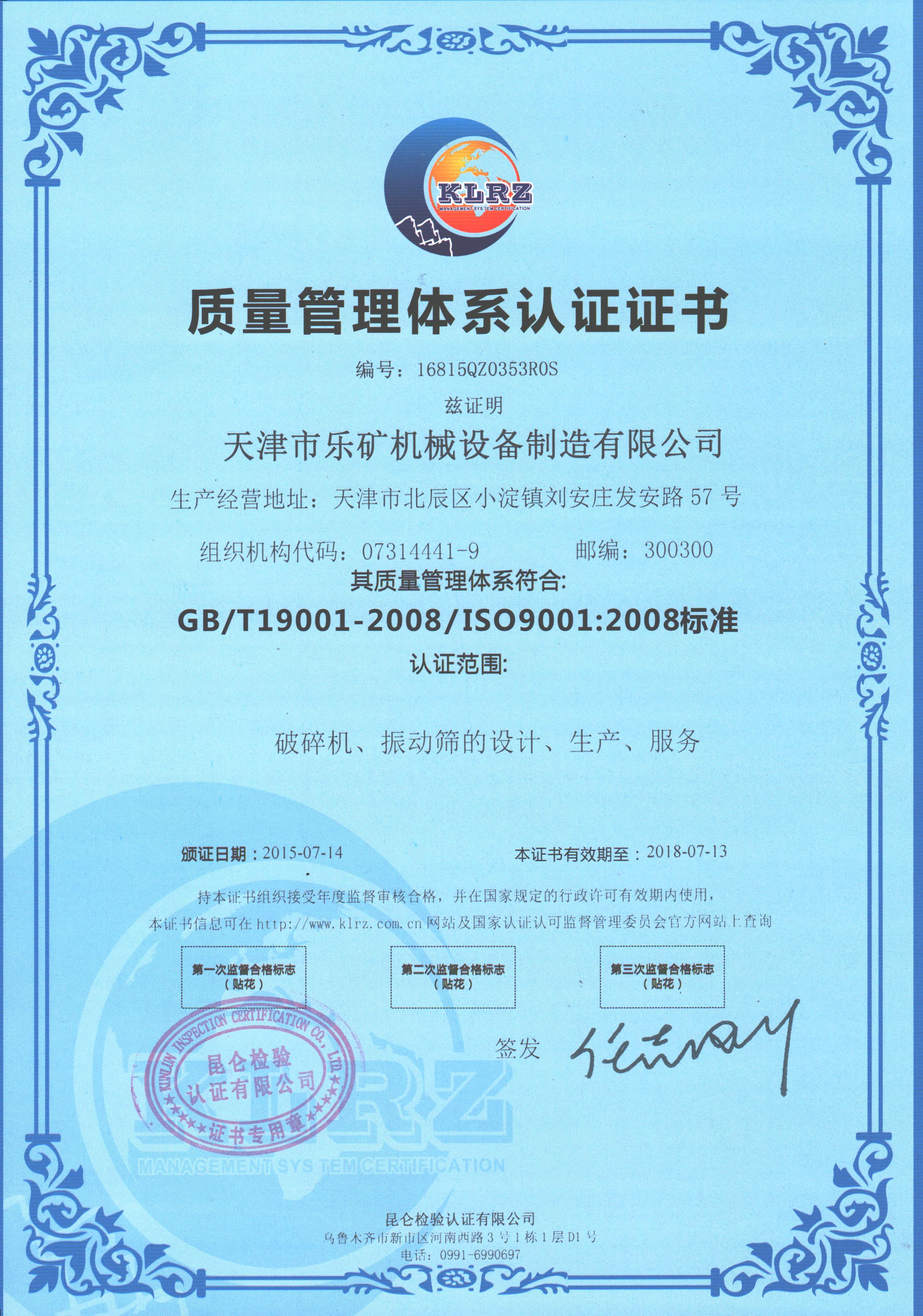 Tianjin Luckcome obtain the certificate of conformity of qua